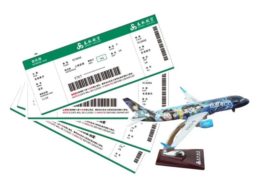 1.春秋航空执飞任意国内航线4张(包销航线除外)